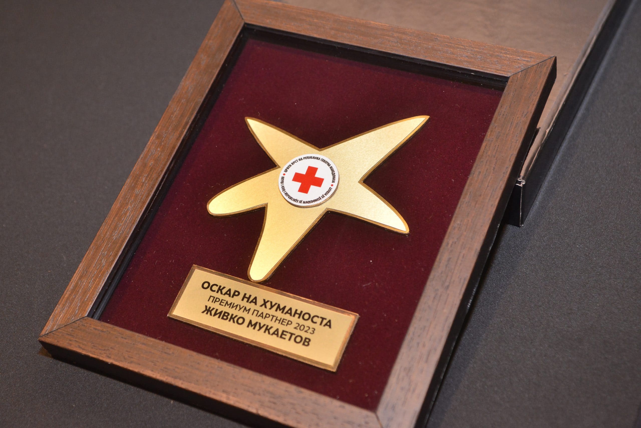 „Со особено задоволство, во рамките на манифестацијата ’Оскар на хуманоста’, му ја доделуваме наградата ’Премиум партнер’ на г. Живко Мукаетов. Неговата лична ангажираност значи поттик на индивидуално ниво, која потоа мотивира, и колективно развивање на општествената одговорност во ’Алкалоид’ АД Скопје. Како личност препознаена во заедницата во која несебично дава помош и поддршка преку повеќе програми и активности на Црвениот крст, г. Мукаетов се истакнува како позитивен пример и во својата лична, но и во професионалната агенда, па Црвениот крст го поставува на високо место не само како поддржувач на нашите активности, туку и како партнер и пријател на хуманоста“, истакнуваат од Црвен крст на Град Скопје.