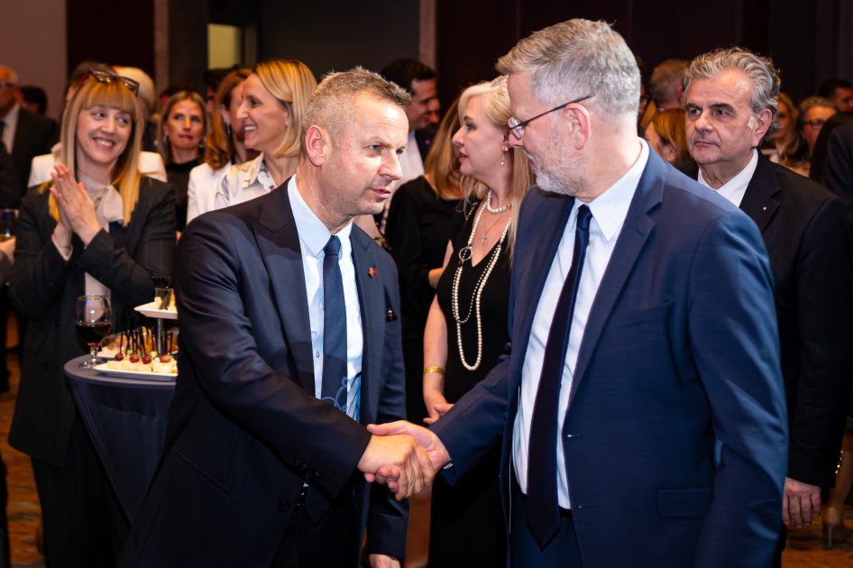 По завршувањето на официјалниот дел беше организиран свечен јубилеен прием, на кој присуствуваа претставници од институциите, дипломатскиот кор, меѓународните организации и од компаниите членки. Настанот уште еднаш ја потврди улогата на AmCham како платформа која ги поврзува јавниот и приватниот сектор, која поттикнува партнерства и која иницира структурни реформи.