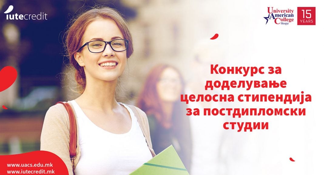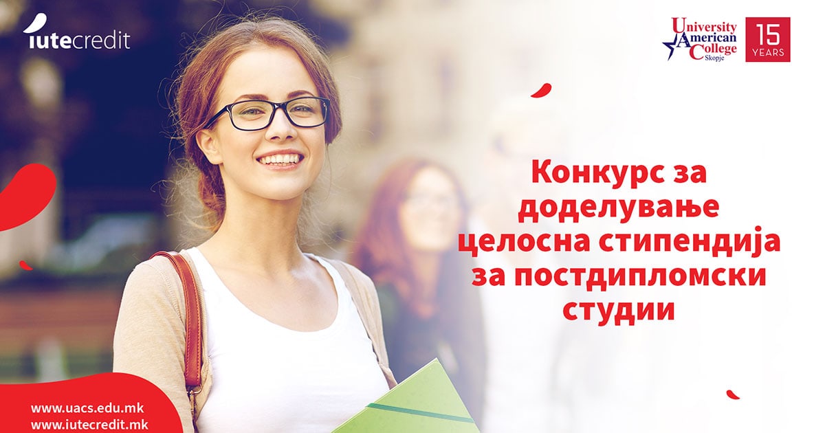 Како дел од грижата за генерациите кои доаѓаат и со цел овозможување на што подобро образование за сите, ИутеКредит Македонија во соработка со Универзитетот Американ Колеџ Скопје, доделува целосна стипендија за постдипломски студии на Факултетот за деловна економија и организациони науки.