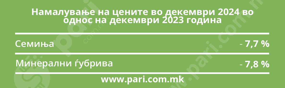 Намалување на цените во декември 2024 во однос на декември 2023 година